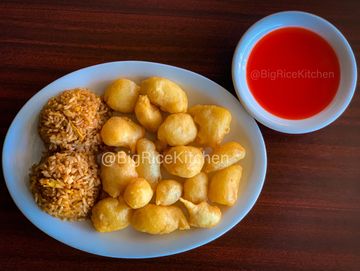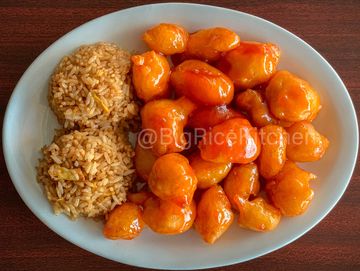 Fried Shrimp (3), Sweet and Sour Pork, and Sweet and Sour Chicken (sauce on the side)