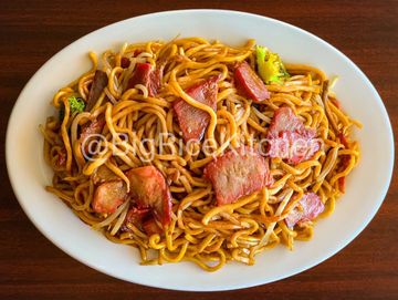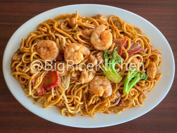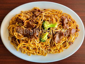 Soft spaghetti noodles stir-fried with broccoli, beansprouts and choice of meat.