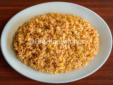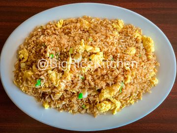 Fried rice mixed with eggs and green onions. Arroz frito que viene con huevos y cebollas verdes.